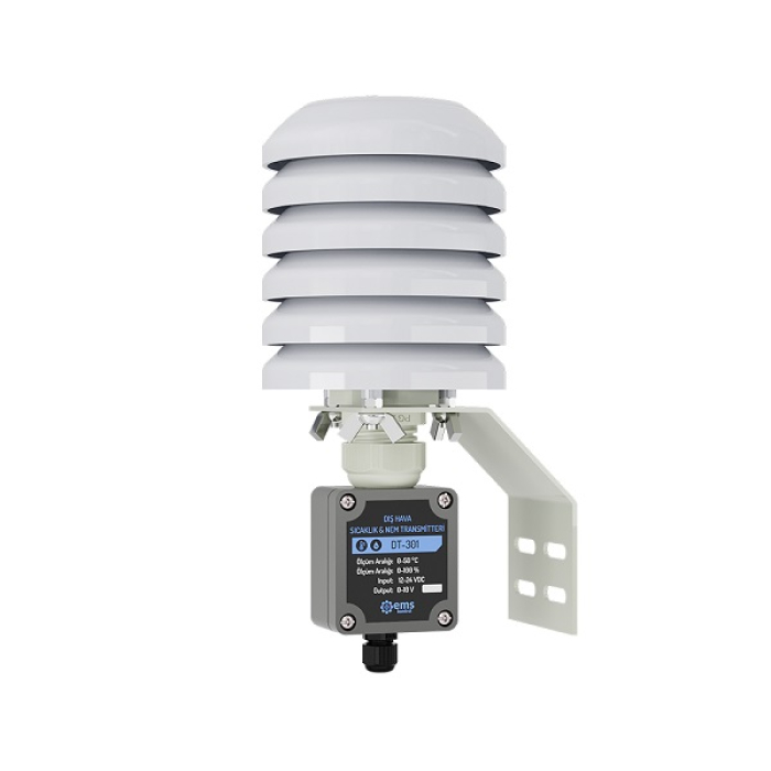 The DT-341 Temperature and Humidity Transmitter inside the radiation shield will precisely measure the temperature and relative humidity values in the environment and convert it into 2 x 4-20mA output signals.